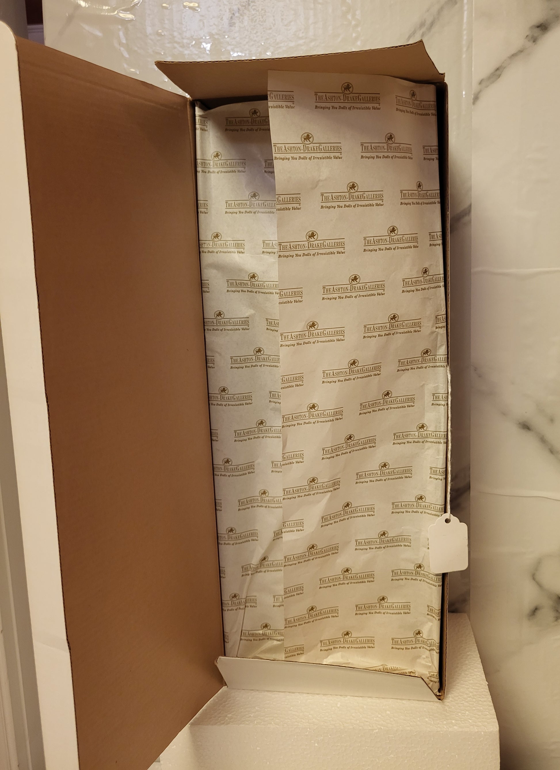 Slight discoloration on the right shoulder, most likely from age. Doll has never been played with. Doll & Box are near mint condition.