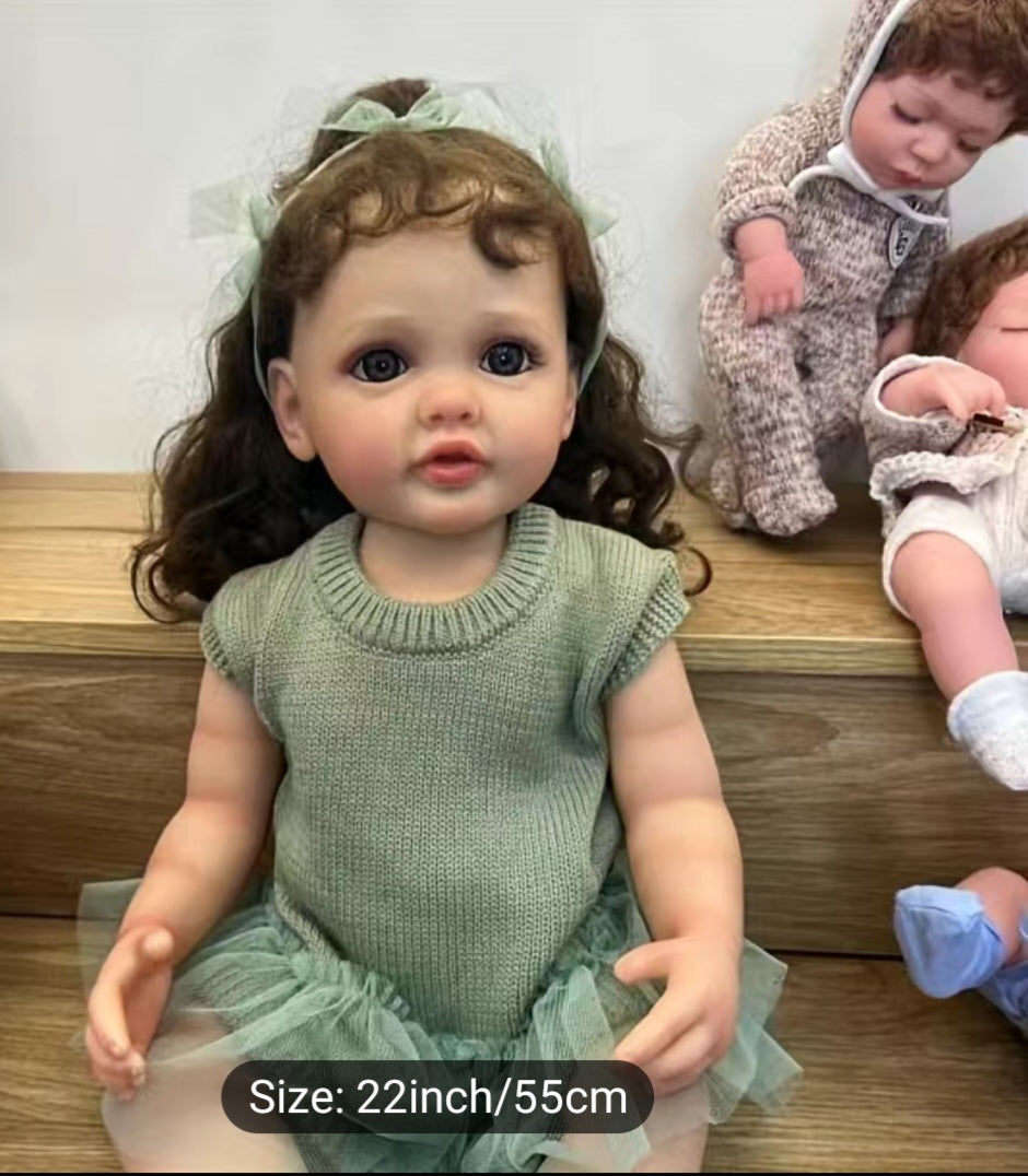 22 Inch 55CM Reborn Baby Dolls, Lifelike Newborn Doll, Curly Hair Soft Touch Handmade Dolls, Full Vinyl