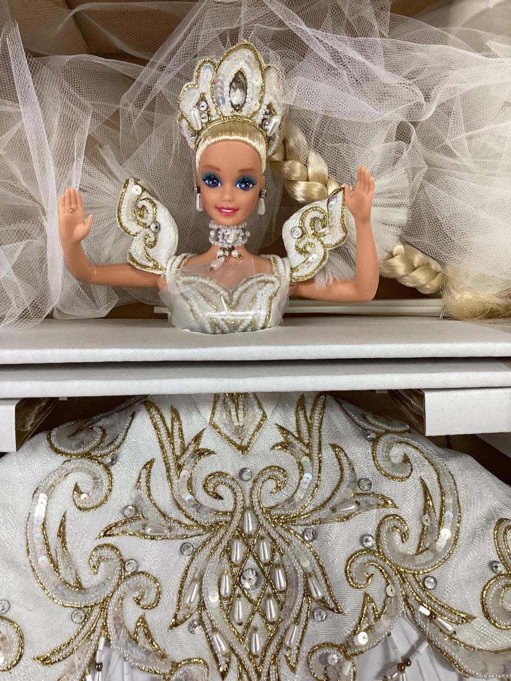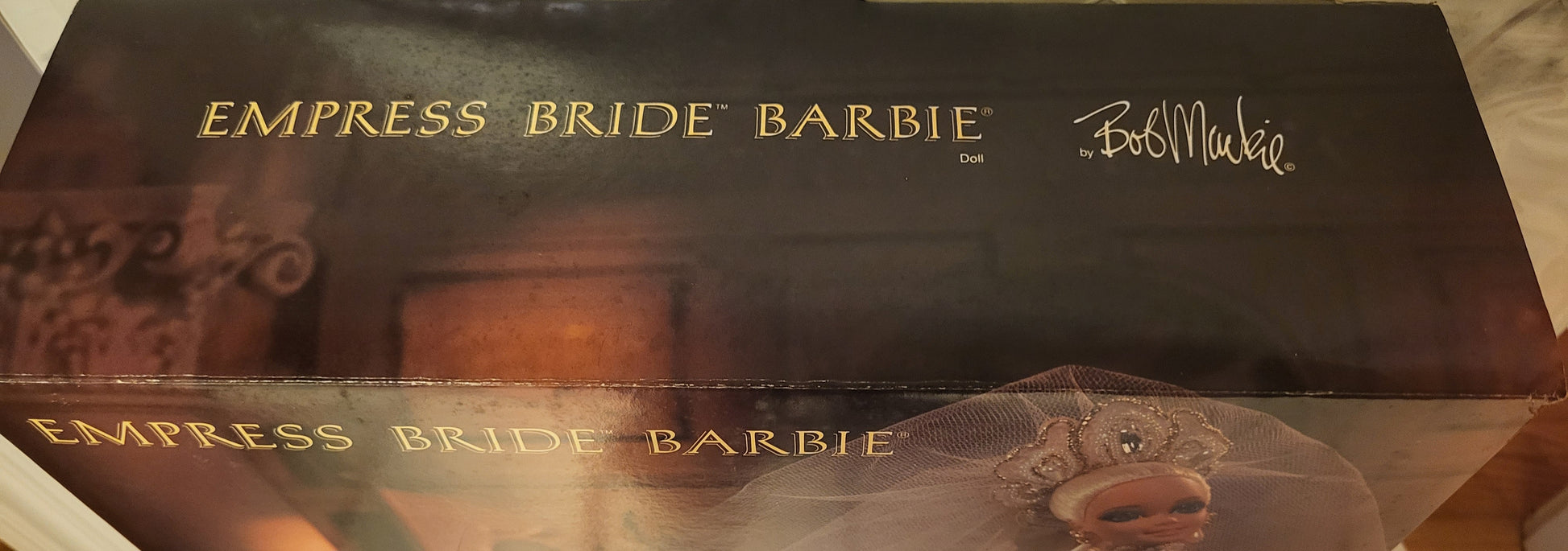 Empress Bride Barbie was bought by N2DHALZ at auction, so she may have been removed from the box . However, our specialist believes the doll and box to be in Near Mint Collectible Barbie Condition. Bob Mackie also provides a drawing w/a reproduction signature. There are some spots on the drawing and on the outer box that needs to be cleaned.