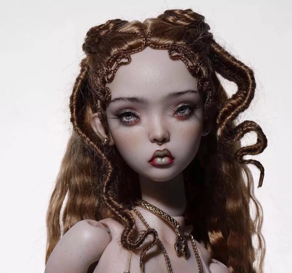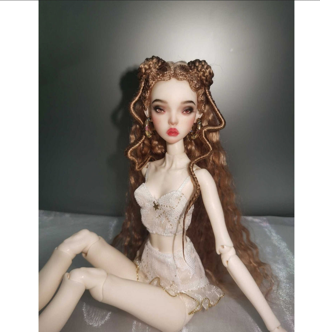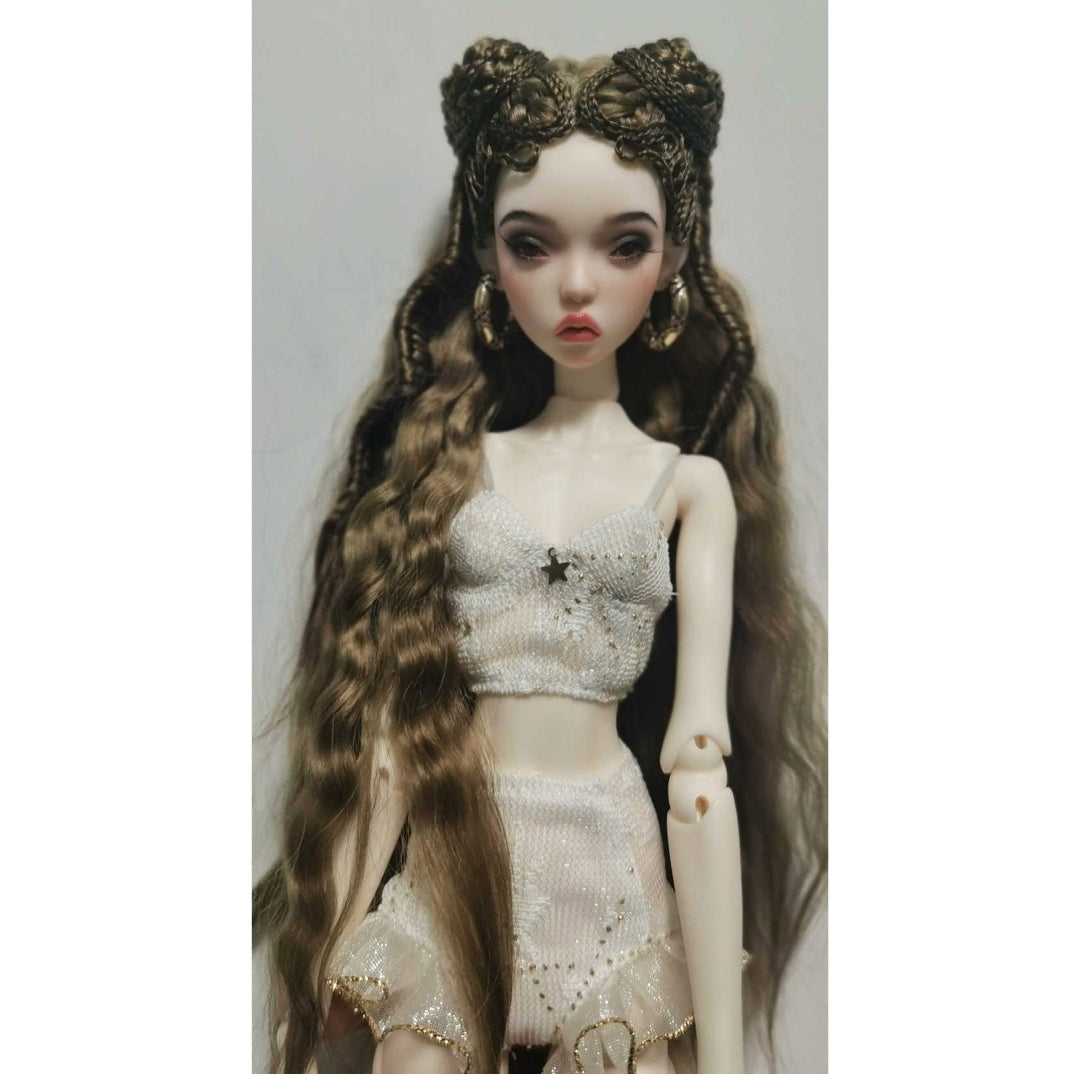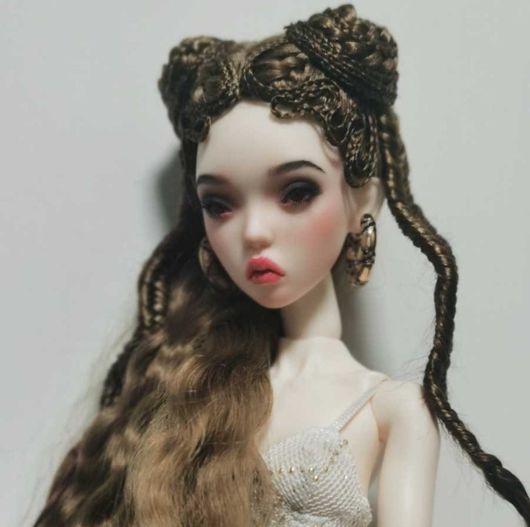Handmade Mohair (Angora) Wig | Intricate Twirls, Curls & Braids for 5in BJD heads like Popovy Sisters. Choose colors from Golden, Brown. Speciality colors like Platinum, Black, & Red are $350 and up.