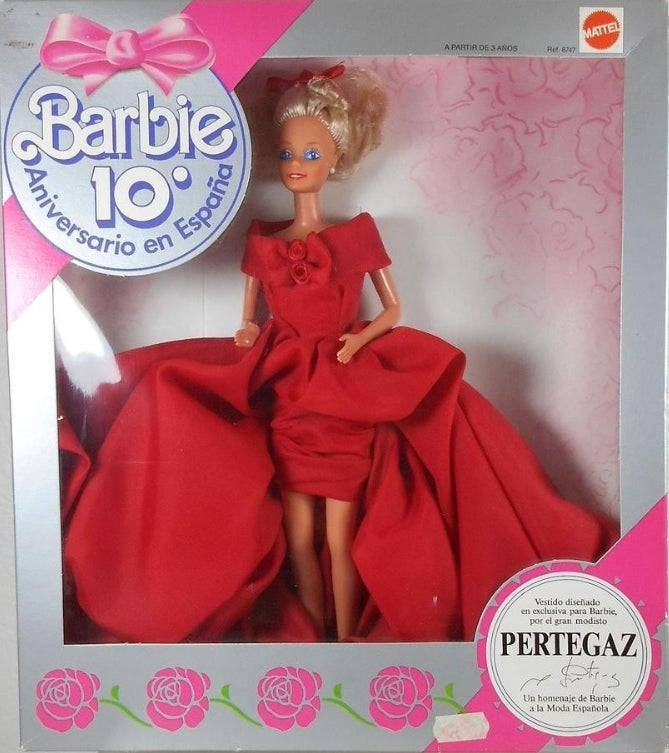 Algunas de las mujeres más famosas del mundo, como JackieKennedy, Audrey Hepburn y la Reina Sofía de España ", y Barbie crearoncreaciones del difunto gran diseñador de moda Manuel Pertegaz (o simplementecomo él simplemente prefería" Pertegaz "). ! Pertegaz diseñó elencantador vestido rojo exclusivamente para “Barbie 10th Anniversary (1988).