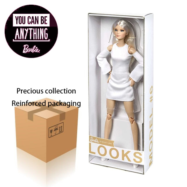 Original Barbie Signature Looks Doll Blonde Fully Posable Fashion Doll Wearing White Dress Doll Toy for Girls perfect gift GXB28