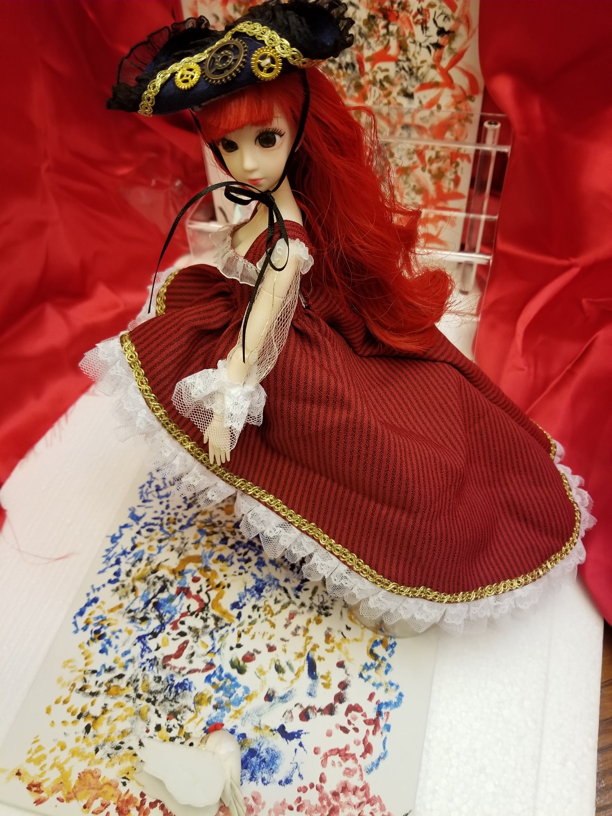 Red Robyn (The Lil Pirate) is an 11.5 inch BJD. She comes with a red pirate's costume trimmed in white, black boots and hat.