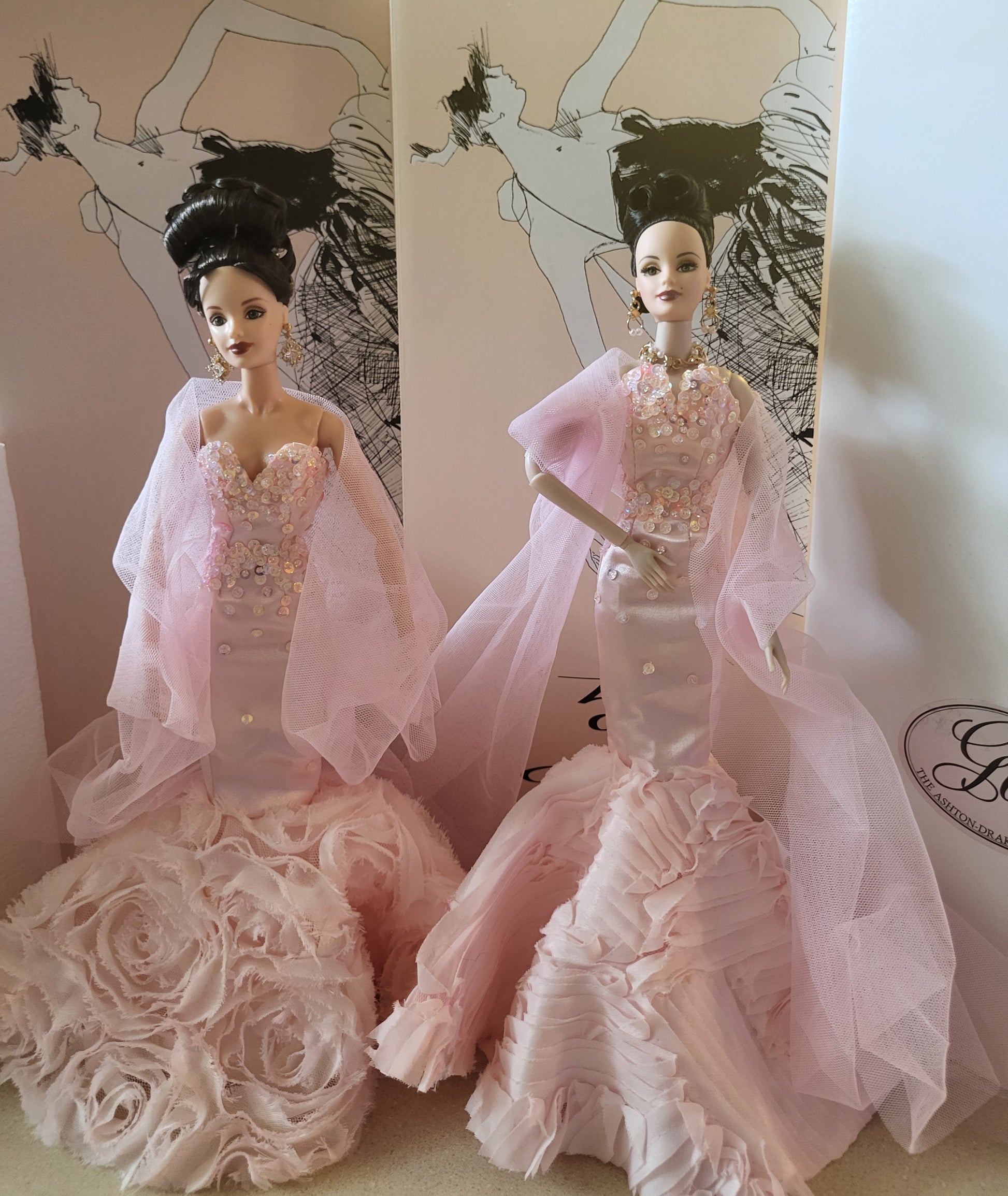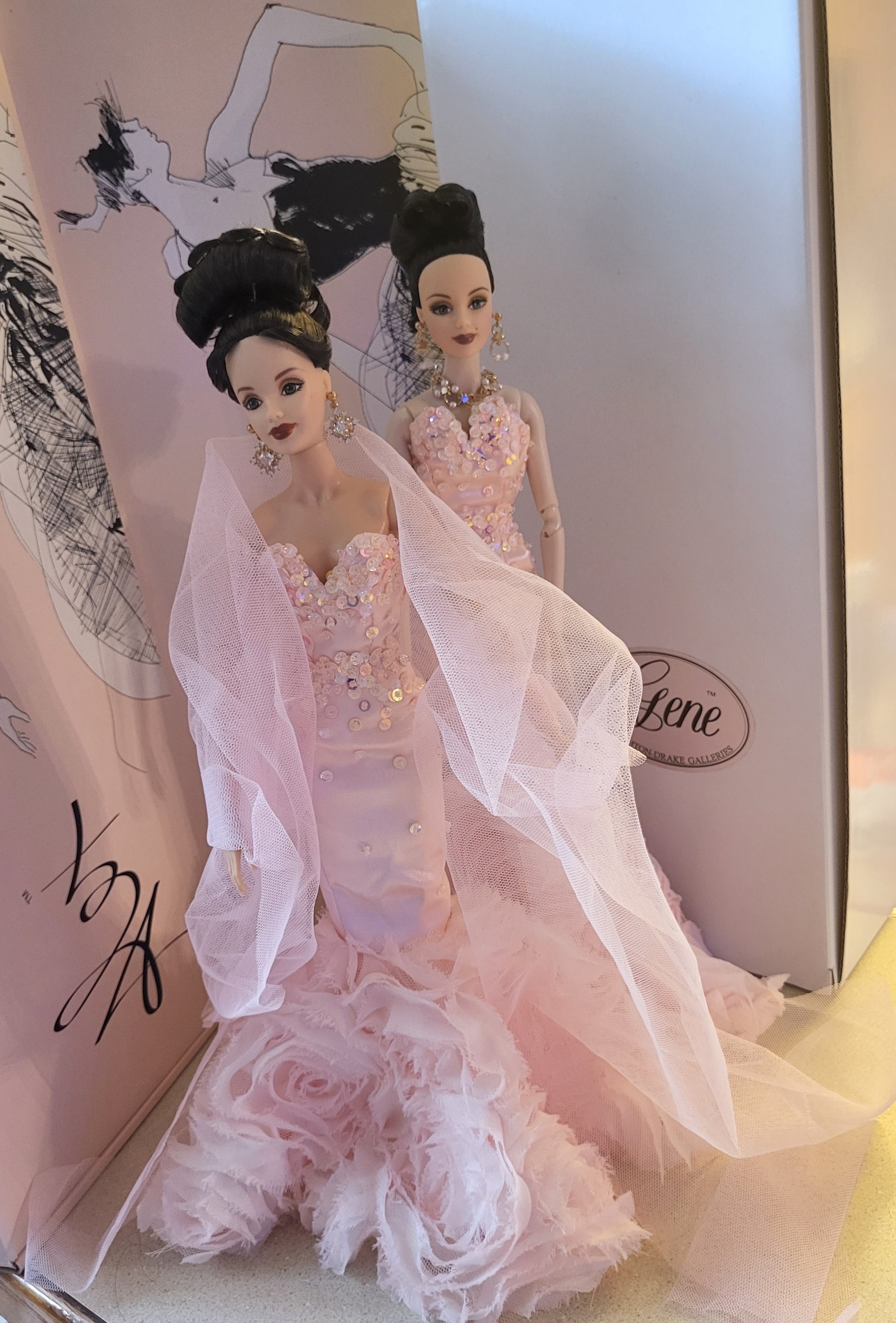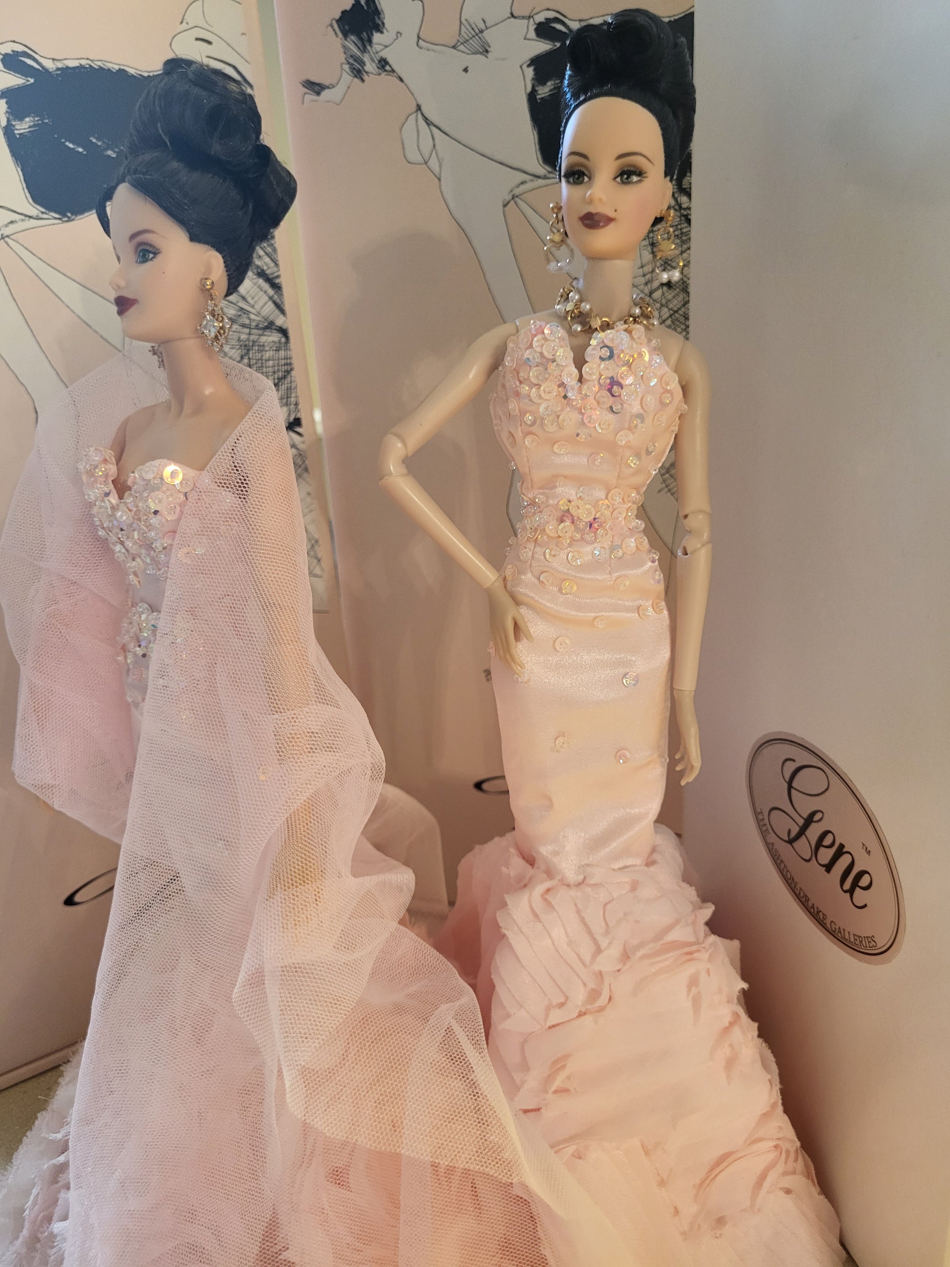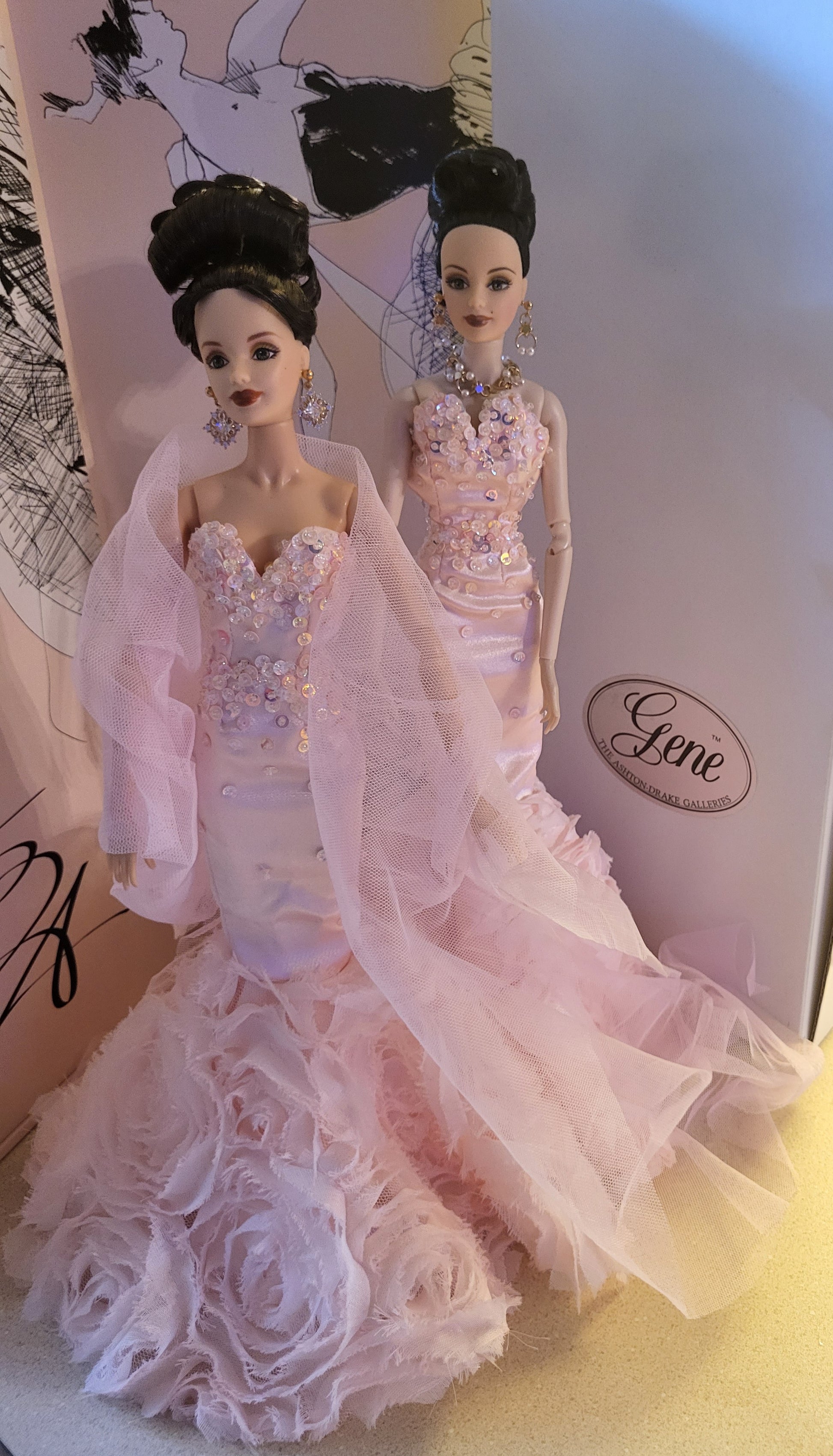 Sequined Pink Mermaid Gown modeled on 12-12.5" Kissmela BJD bodies. Gown fits Barbie / Fashion Royalty / Kissmela.